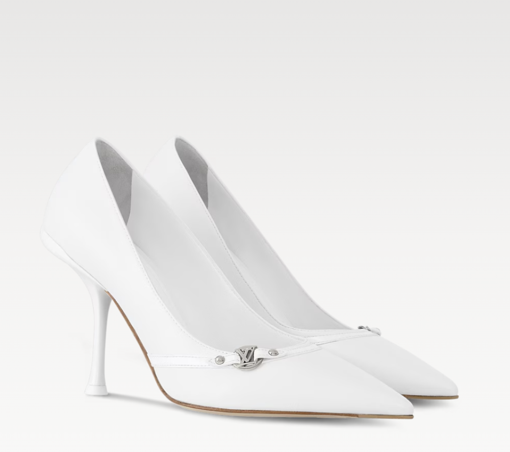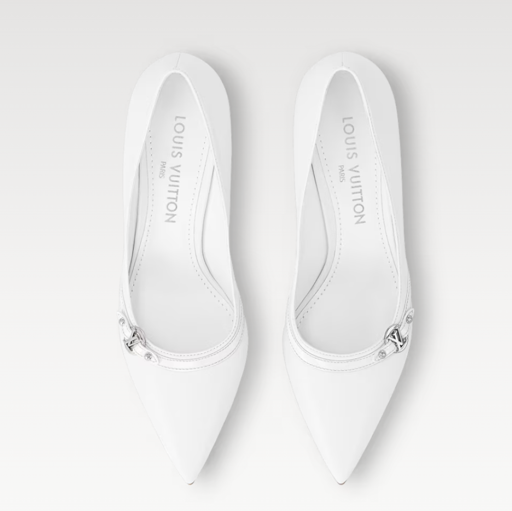 صُنع حذاء 6AM Pump من جلد الحمل الطري، ويتميز بتصميم أنيق مزود بمقدمة مدببة. والجزء العلوي الأنيق مزين بحزام زينة يحمل إكسسوار LV Circle ودبوسين صغيرين. يأتي هذا الإصدار بكعب متين ABS، بلون يتناغم مع الجزء العلوي، مزخرف بتوقيع Louis Vuitton.